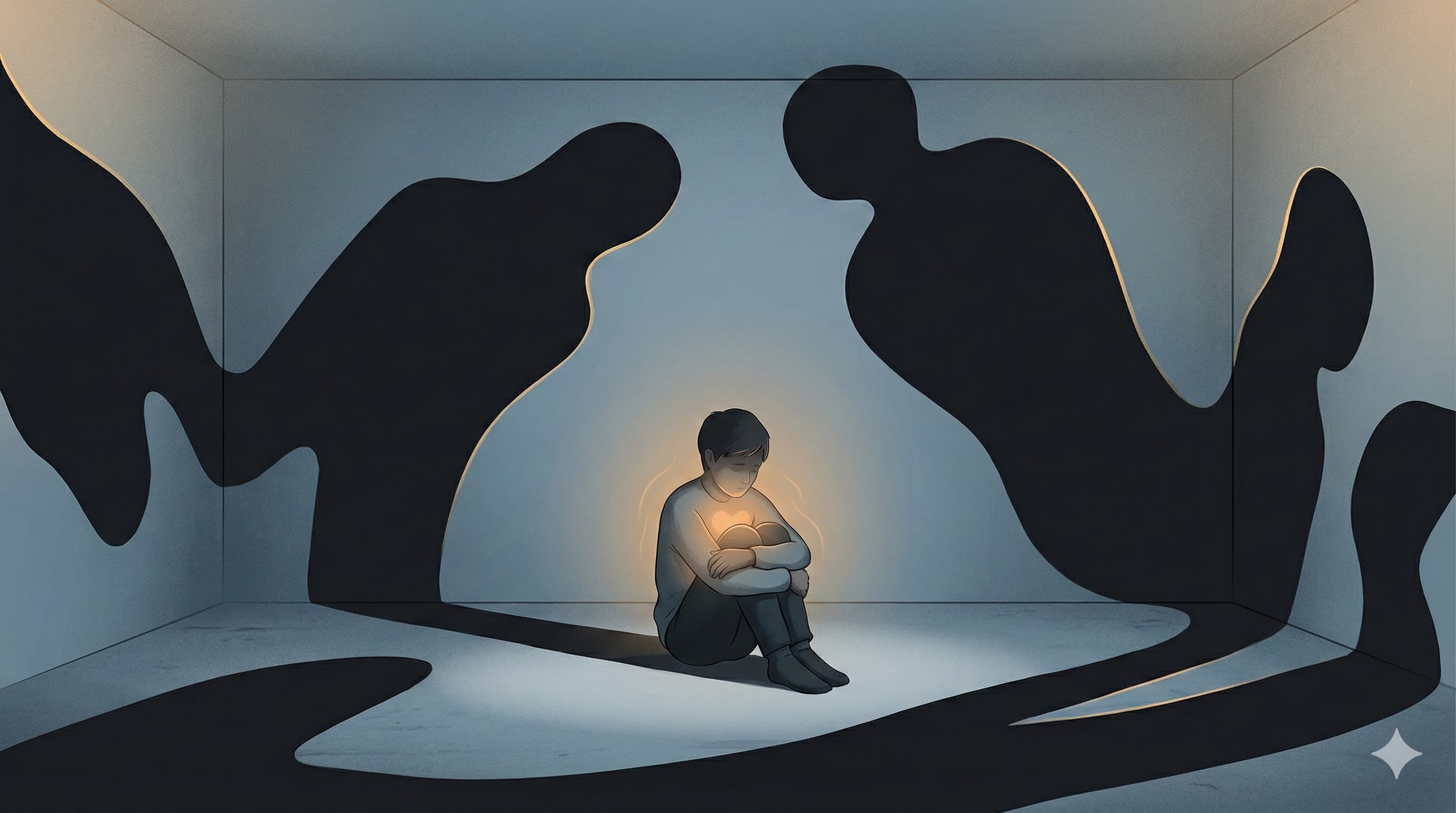 Das Kind kann nicht denken: „Die Erwachsenen sind überfordert." Es denkt: „Ich bin falsch." Und um zu überleben, schneidet es sich vom Fühlenden ab. Der Körper wird zum Feind – weil er der Träger der Scham ist, weil er sichtbar macht, was verborgen bleiben muss. Sichtbarkeit wird Gefahr. Verletzlichkeit wird Schwäche.